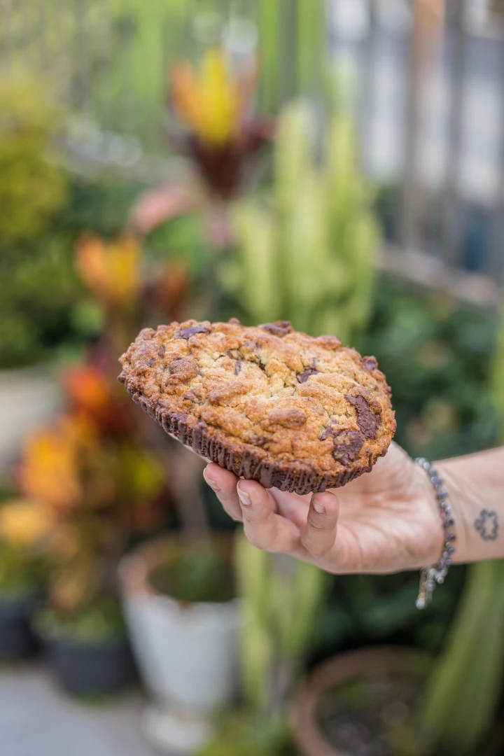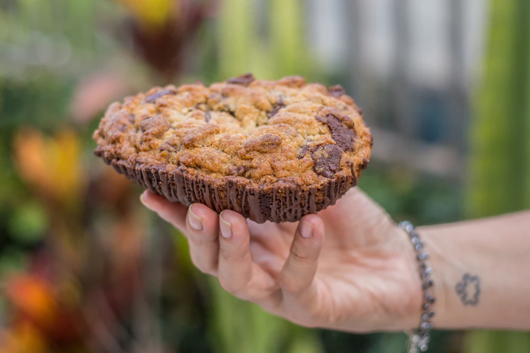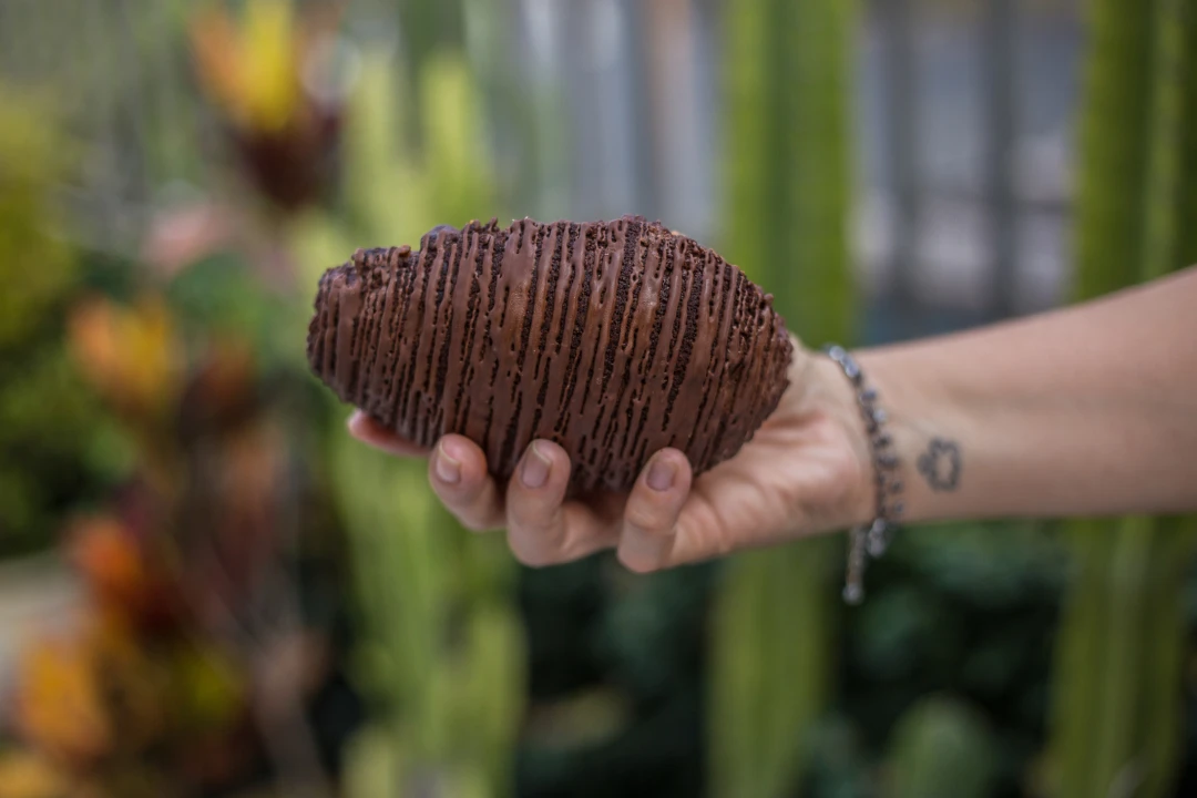 Base de brownie de chocolate meio amargo, recheado com doce de leite e coberto com cookie gotas de chocolate.