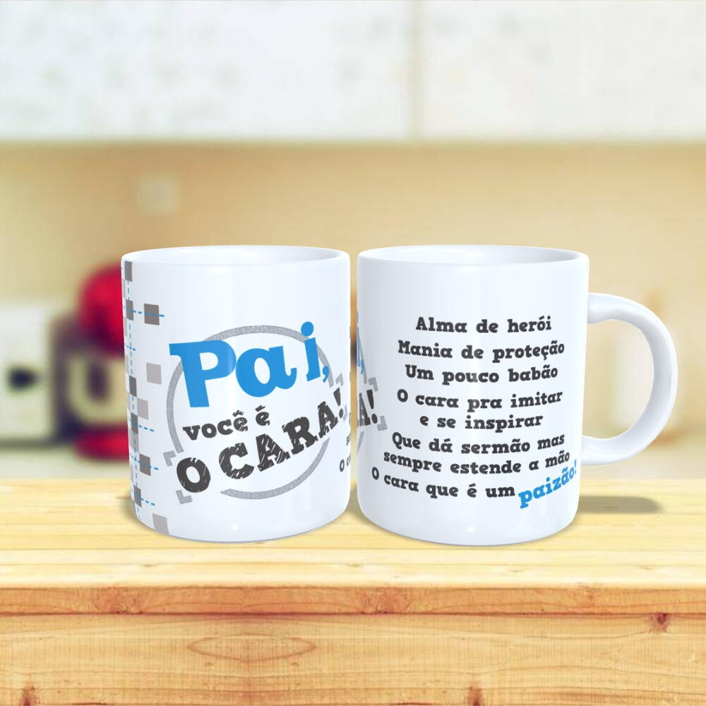 Acompanhada de uma almofada e uma caneca personalizada com a frase Pai, você é o cara, um presente para celebrar a figura incrível que ele é em sua vida.